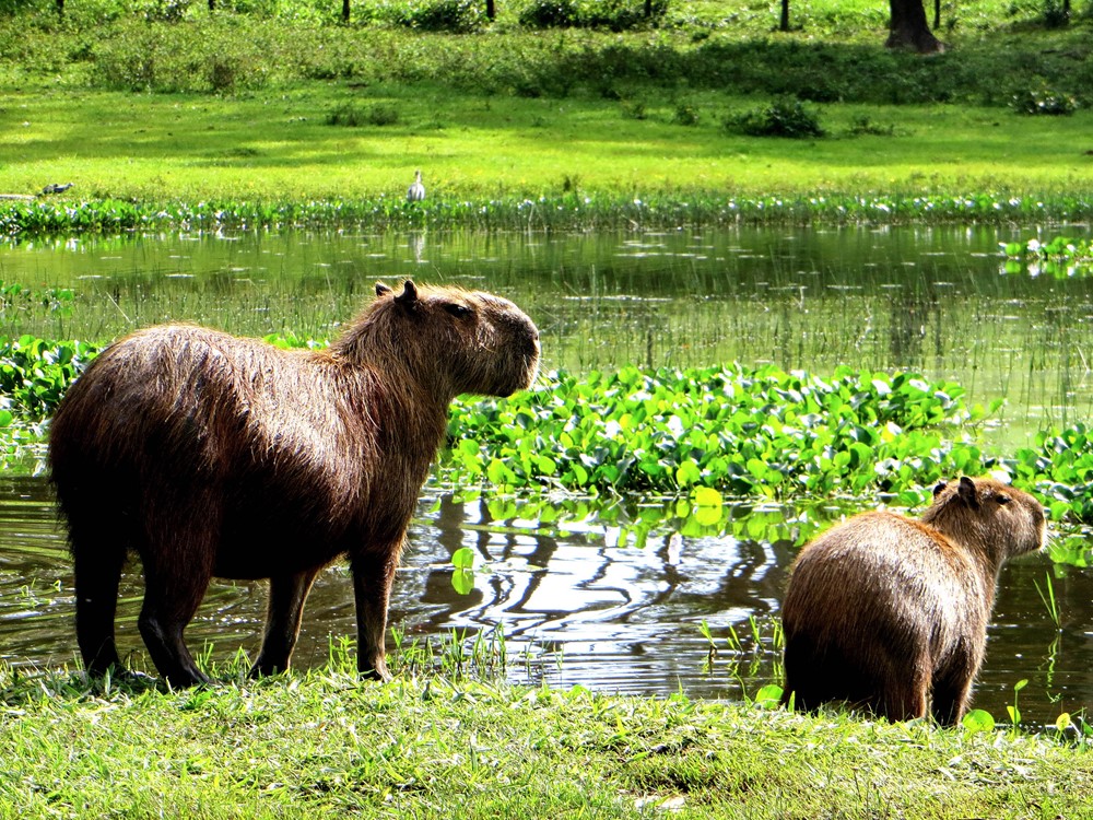 Se zkušeným přírodovědcem na lodi budeme hledat a fotografovat nejenom jaguára. Budou zde příležitosti pro fotografování hlučných tlup vyder obrovských, kapybar. V březích hnízdí ledňáčci. Průvodci často znají stálá hnízdiště arů hyacintových. U břehů žije mnoho kajmanů, potravu hledají draví ptáci i čápi jaribu. Noc v hotelu u řeky Cuiabá.