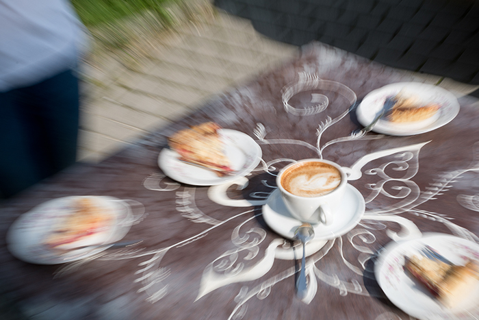 Ve středu ráno jsme vyrazili fotografovat do místní pražírny kávy, kde jsme fotili pěnové obrazce, zátiší, zrnka kávy, detaily a také posvačili skvělý tamní koláč. Byla to skvělá rozcvička před přednáškou na kompozici, která se odehrála dopoledne, aby byli žáci vyzbrojeni dostatkem teoretických informací pro odpolední program – fotografování na řece Vydře, kde si kromě základů kompozice procvičili hlavně krátké a dlouhé časy a práci na stativu. Na večerní promítání tak bylo materiálu opět dost.