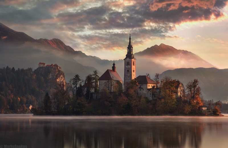 O fotografii: Fotografie vznikla za úsvitu, při fotografickém výletu na Slovinsko loni na podzim. Podmínky byly velmi proměnlivé a slunce se co chvíli přetahovalo s mraky o nadvládu.