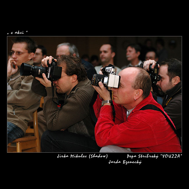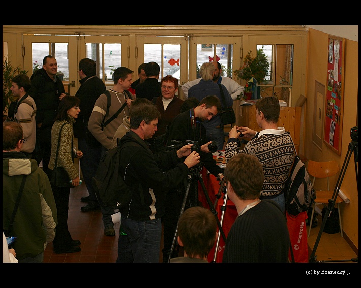 Je devět hodin ráno a přicházíme do Švehlovy sokolovny. Přestože program začíná v deset, už je tu život. Fotograf Jakub Stejskal ze společnosti Hama si začíná připravovat před sálem své miláčky: objektivy Sigma a stativy Manfrotto. Zástupce firmy Hewlett-Packard přiráží s fotografickými tiskárnami. Den předtím jsme na vernisáži obdivovali fotografie z Výstavy Setkání fotografů 2006 vytištěné na HP Photosmart 8750. Tisky jsou rozvěšeny jak v Galerii v chodbě, tak i v hlavním prezentačním sále a fotky jsou to moc krásné. V sále připravujeme projekci. Společnost Olympus nám půjčila digitální projektor. Je to taková malá krabička. Ani se nechce věřit, že takhle malý projektor může být dostatečně kvalitní pro fotografy. Technika jde dopředu a to, co byla před dvěma roky bedna, se dnes vejde do dámské kabelky. Musí tam však být pořádný objektiv, aby to fungovalo… Pro informaci, projektor se jmenuje Plus V-332 a svítivost má 1200 ANSI.